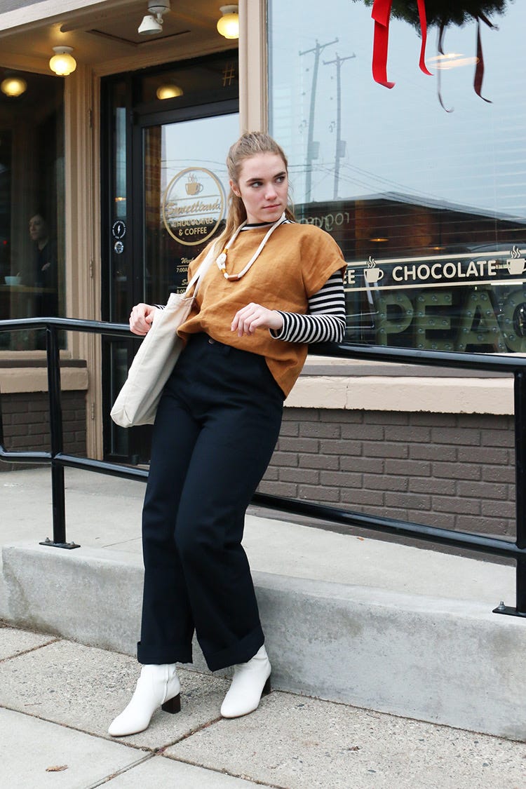While I will wear this dress throughout the autumn months (It will be hot and humid well into December for me as a Houstonian), I got to try styling it in San Francisco in the colder temperatures. While I know we typically associate linen with the summer months- I actually feel like linen can be a more year round fabric as opposed to just being seasonal. The beauty of linen is that it instantly adds texture to any outfit. I feel like the styling possibilities are endless with the dress.